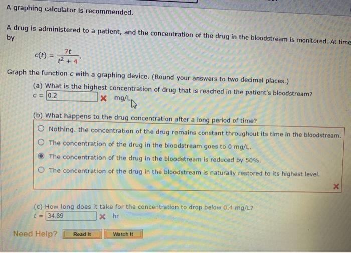Solved A Graphing Calculator Is Recommended A Drug Is Chegg Com
